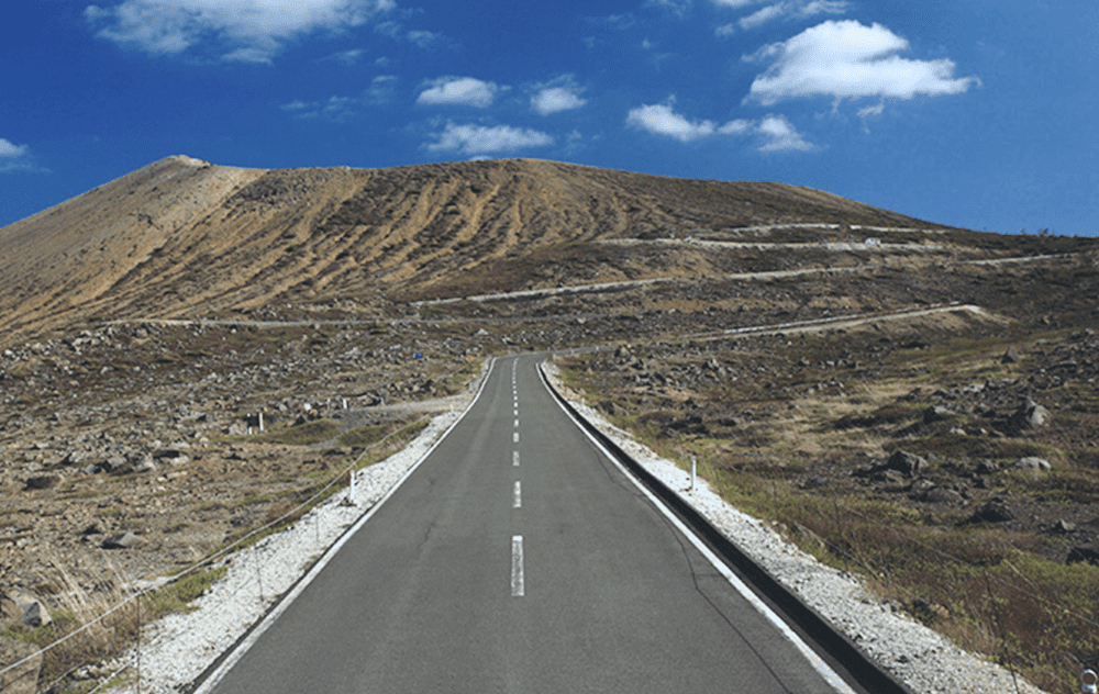 磐梯吾妻スカイラインは東北有数のツーリング/ドライブコースであり、一部火山ガスの影響によりアリゾナのような荒涼とした景色が眼前に広がります。